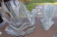 We have developed a unique process to create these. There are very many different work steps necessary including cutting, grinding and fusing which can vary according to the type of glass that is being used and the effect that is desired.